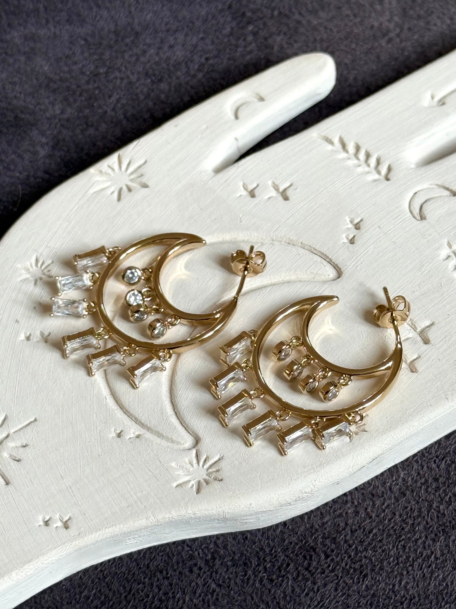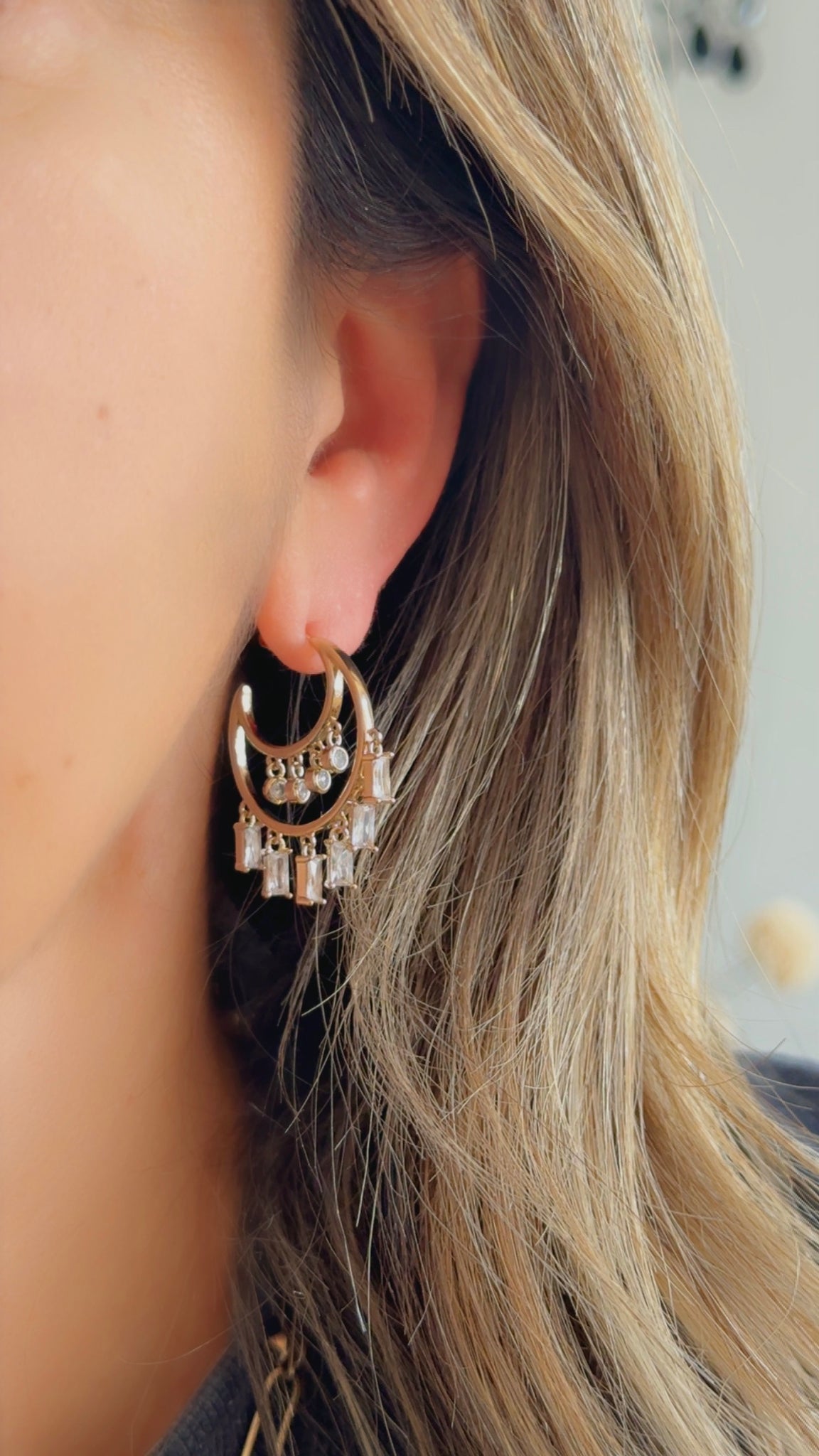 Boucles d'oreilles créoles en plaqué or 3 microns et pampilles zircons blancs